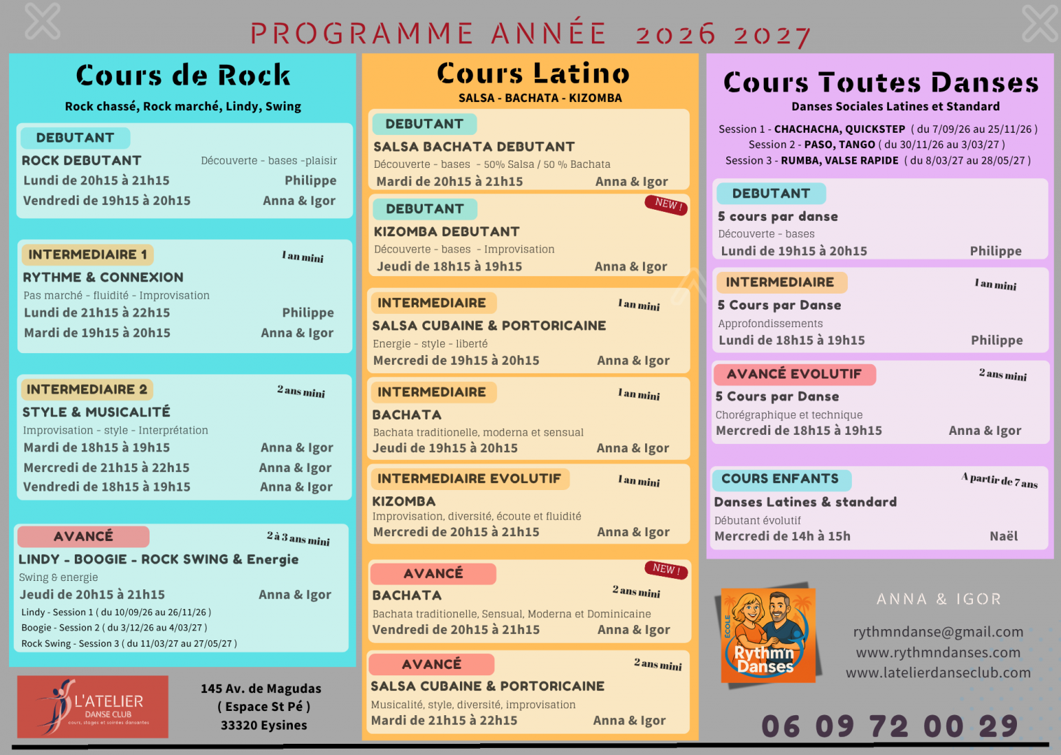Session 1 : CHACHACHA, QUICKSTEP( du 7/09/26 au 25/11/26 )