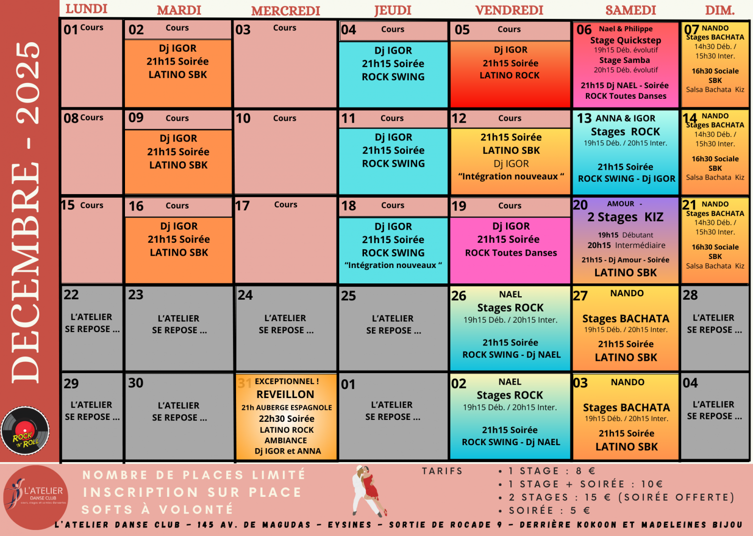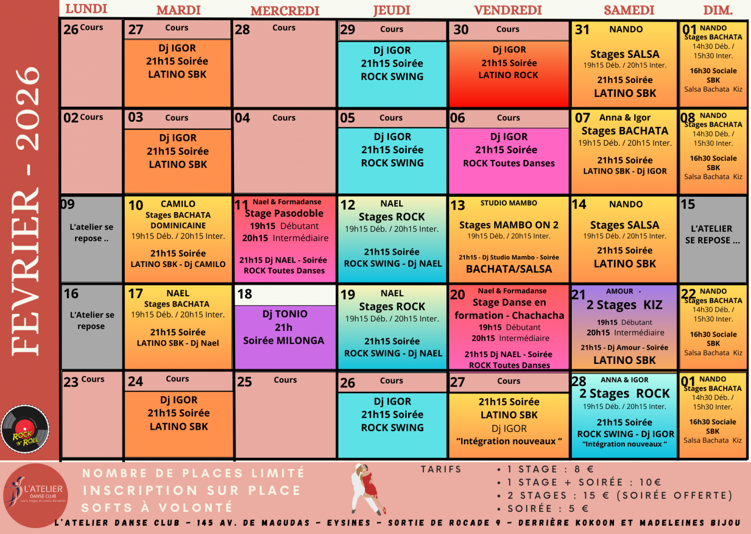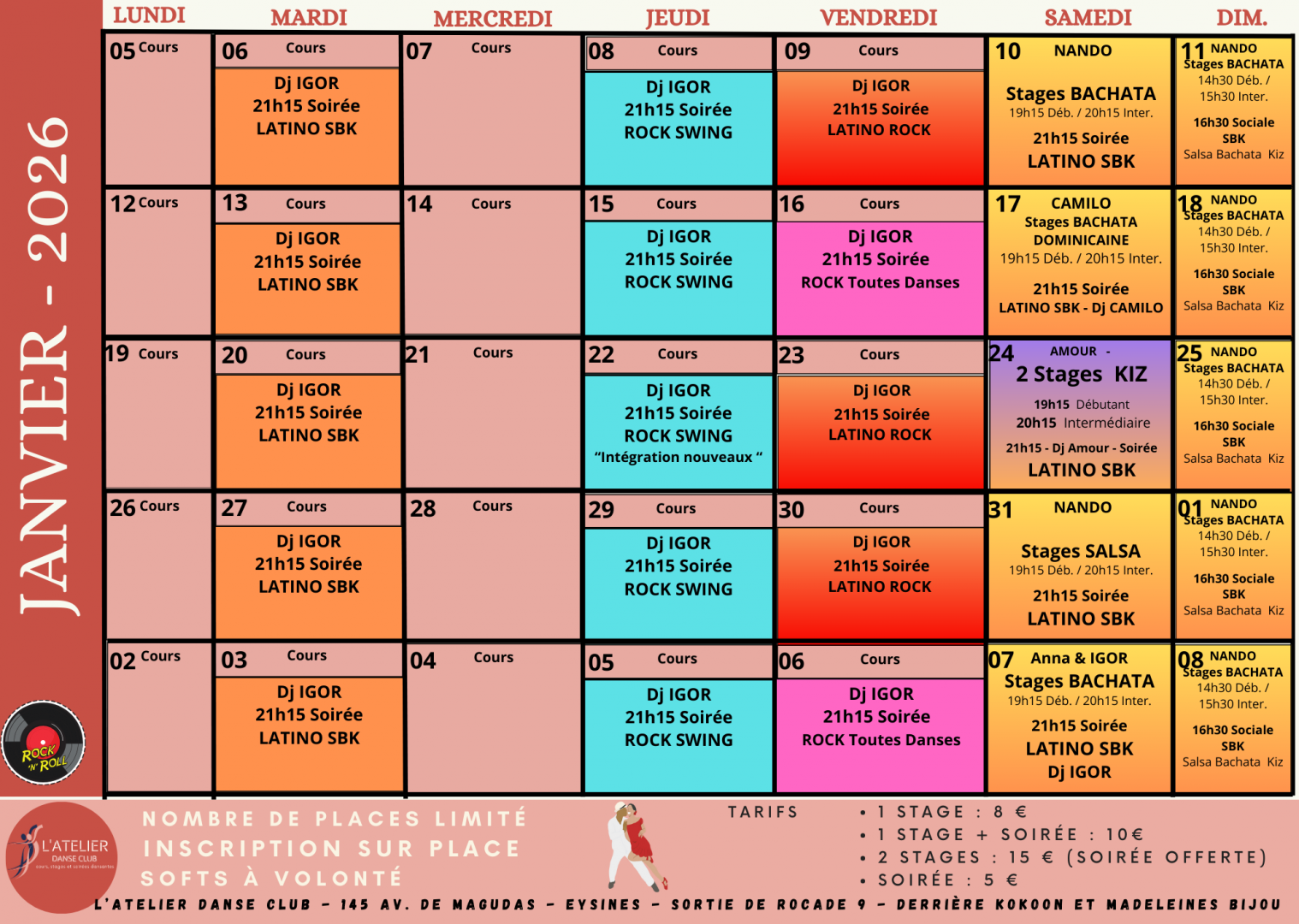 Découvrez la programmation de tous nos stages et soirées du mois !